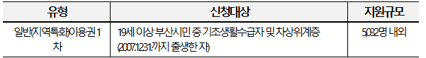 ※ 신청일 기준 주민등록주소지 상의 광역지자체(부산광역시)에서만 신청 가능