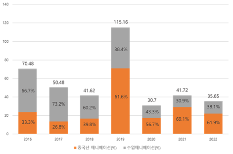 * 출처: 본 저작물은 KOTRA에서 2023년 작성하여 공공누리 제4유형으로 개방한 ’[저작물명: 중국 애니메이션 시장 트렌드](작성자: 항저우무역관)’를 이용하였으며, 해당 저작물은 KOTRA 해외시장뉴스(dream.kotra.or.kr/kotranews)에서 무료로 열람 가능합니다.