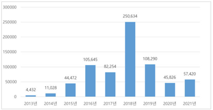 <중국 애니메이션 수입액 추이>