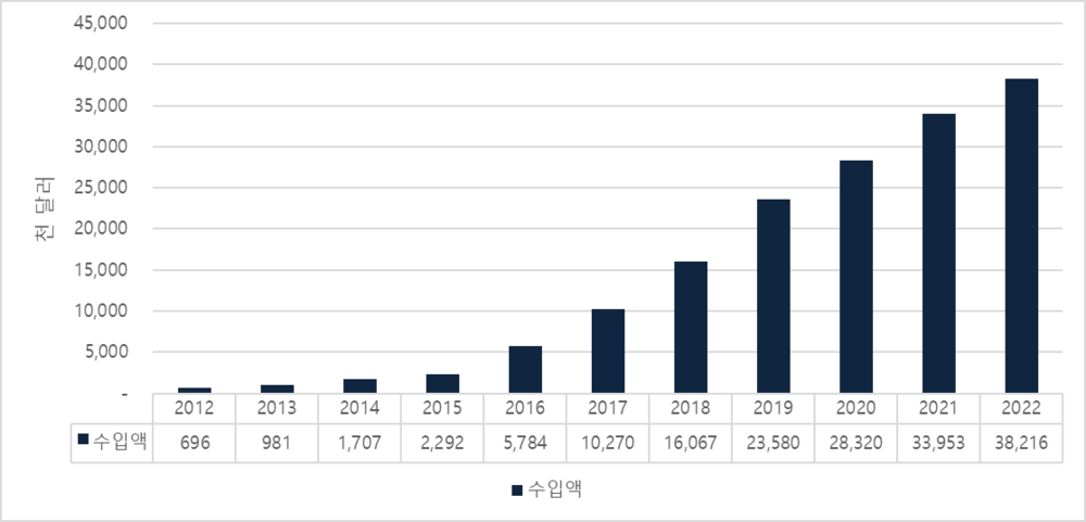 폴란드의 한국 화장품 수입 규모는 지난 10년 동안 연평균 49.2%의 성장률을 기록했다. 2022년에는 약 3821만6000달러의 한국 화장품이 폴란드로 수입됐으며, 이는 전년 대비 12.6% 증가한 것이다. 폴란드 화장품 시장의 연평균 성장률이 약 5.6%인데 비해 한국 화장품 수입의 연평균 성장률의 폭이 매우 높은 것은 K-Beauty가 폴란드 시장에 얼마나 빠르게 진입하고 있는지를 보여준다.
