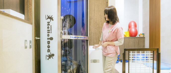 일본 한큐백화점 내 헬로독 반려동물 용품점은 동물용 산소 캡슐을 설치하고 있으며 전문 카운셀러의 시니어 케어서비스(노령반려동물용 저칼로리 간식 및 관절염 예방효과가 있는 보조제 추천 등)를 제공하고 있다. 또한, 노령견을 위한 휠체어 테스트 및 대여가 가능하다.(예약 필요, 니시노미야 한큐점만 가능)