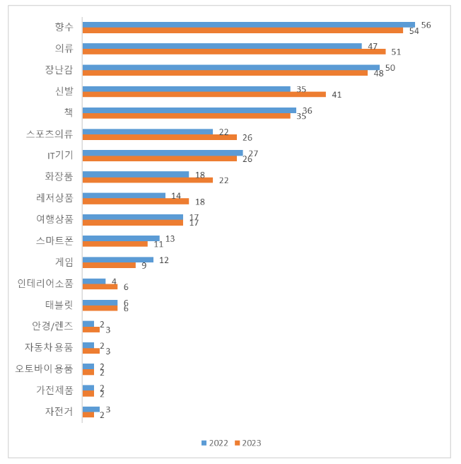 크리스마스 선물로 향수, 의류, 장난감 등 선호