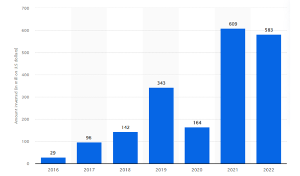 <2016~2022년 영국 에듀테크 분야 투자액>