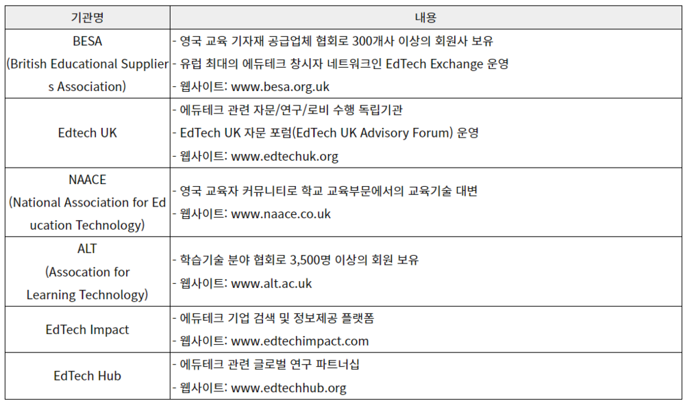 영국의 에듀테크 관련 기관은 아래와 같다.