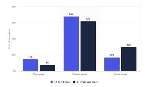 <미국 이성애자 남성의 연령별 스킨케어 관련 화장품 사용 동향(2022년)>