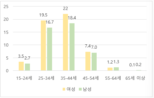 데이터 분석 기업 LnData가 2023년 발표한 보고서에 따르면 캠핑용품 주 소비층은 35~44세 여성, 25~34세 여성, 35~44세 남성 순으로 많았다. 55세 이상을 제외한 전 연령대에서 여성 소비 비중이 남성보다 높은 것이 눈에 띈다.