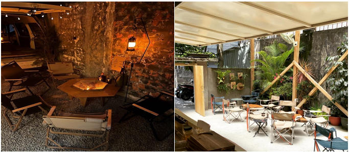 타이베이시 스린(士林) 구에 위치한 ‘Noob Tent’는 캠핑 컨셉 바(bar)로 가게 내부에는 아늑한 분위기의 조명, 캠핑카, 캠핑용 테이블과 의자가 비치돼 있다. 특히 캠핑 필수용품으로 꼽히는 캠핑랜턴을 테이블마다 놓아 캠핑 분위기를 한껏 돋웠다. 신베이(新北)시에 위치한 ‘JAG’은 캠핑 스타일로 꾸며진 주택 개조 식당이다. BBQ 세트 메뉴 주문 시 캠핑용 미니 화로와 갖가지 꼬치가 제공돼 야외 캠핑장에서 식사하는 듯한 분위기를 즐길 수 있다. 이러한 캠핑 컨셉 맛집들은 잠시라도 힐링이 필요한 현대인들에게 큰 인기를 끌고 있다.