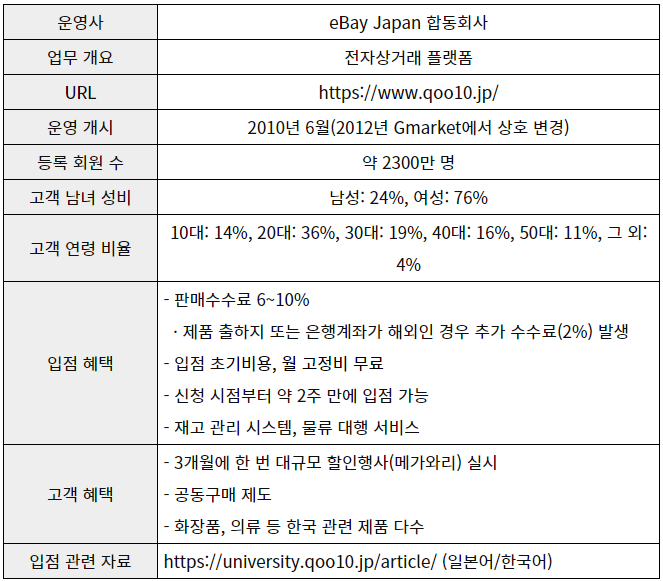 [자료: 자료: Qoo10, KOTRA 오사카 무역관 정리]