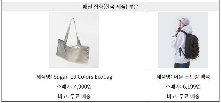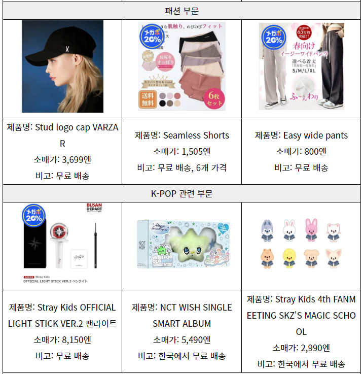 * 출처: 본 저작물은 KOTRA에서 2024년 작성하여 공공누리 제4유형으로 개방한 '[저작물명: 일본 Z세대에게 인기인 이커머스 플랫폼에서 최근 잘 팔린 제품은? (작성자: 오사카무역관 하마다유)]’ 를 이용하였으며, 해당 저작물은 KOTRA 해외시장뉴스(dream.kotra.or.kr/kotranews)에서 무료로 열람 가능합니다.