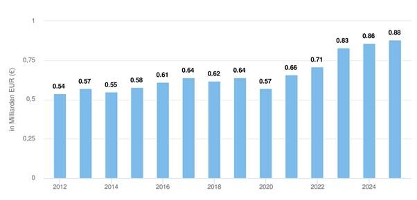 Statista에 따르면, 2022년 독일 차 시장의 총매출액은 7억1000만 유로를 기록할 것으로 추정되며, 올해에는 매출액이 8억3000만 유로로 약 16.9% 증가할 것으로 예상된다. Statista는 독일 차 시장이 2023년부터 연평균 2.97%로 성장해 2025년에 그 규모가 8억8000만 유로에 달할 것으로 전망했다. 한편, 인구 1인당 매출액은 2022년 기준 8.43유로에서 2023년 9.96유로로 약 18.1%가 증가할 것으로 보이며, 2025년에는 10.57유로를 기록할 것으로 보인다.