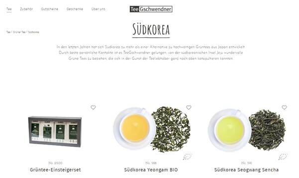 함부르크무역관이 인터뷰한 한 유통사 구매 담당자에 따르면, 최근 독일의 업체들은 중국과 일본에서 주로 수입되는 잎녹차와는 다른 제품을 찾고 있는데, 그중 한국의 잎녹차가 높은 관심을 받고 있다고 한다. 그 이유는 한국산 잎녹차의 건조 방식이 일본, 중국과 달라 기존 제품과 차별성이 있기 때문이다. 해당 구매 담당자는 “차별성을 갖기 위해서는 건조 상태에서 잎녹차의 모양과 차를 우려냈을 때 모양이 기존 제품과 다른 것이 중요하다. 한국산 잎녹차는 중국과 일본과는 다른 건조 방식을 사용해 이 조건을 충족시킬 수 있어 최근 많은 관심을 받고 있다”라고 답했다. 이처럼 최근 인기가 높아진 한국의 잎녹차는 독일 최대 차 판매 체인인 TeeGschwendner에 진출해 독일 전역에서 판매되고 있다. 그뿐만 아니라, 각종 차를 전문으로 판매하는 온라인 마켓에서도 한국산 잎녹차를 판매하는 곳이 늘어나고 있다.