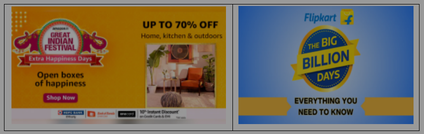 디왈리 행사는 매년 10월 ~ 11월 경에 시작된다. 인도의 대표적인 이커머스 플랫폼인 ‘아마존(Amazon)’과 ‘플립카드(Flipkart)’를 포함한 여러 온라인 플랫폼은 다양한 대형 할인 행사를 진행한다. 2023년 디왈리 축제 기간은 11월 10일부터 15일까지였는데, 아마존은 연계 할인 행사인 ‘Great Indian Festival’을 10월 8일부터 11월 10일까지, 플립카드는 ‘The Big Billion Days’를 같은 기간부터 10월 15일까지 진행했다. 아마존의 행사 기간 동안 무려 11억 명이 플랫폼에 방문했고, 신규 유입된 소비자는 400만 명에 달했다. 플랫폼에 입점한 중소업체 판매량은 전년 동일 이벤트 대비 35% 이상 증가했다.