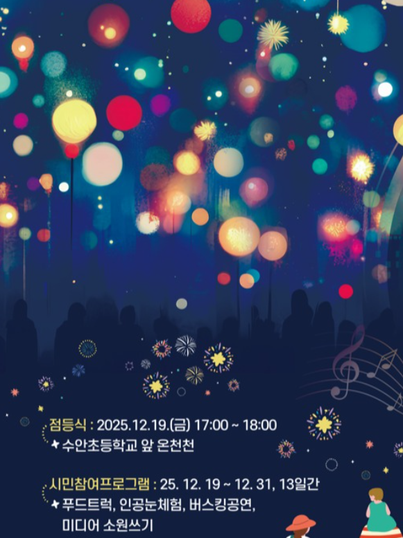 부산광역시 동래구에서는 화려한 불빛으로 아름다움을 노래하는 온천천 빛과 함께하는 특별한 겨울밤을 즐길 수 있다. 축제에 많은 관심과 참여 부탁한다고 전했다.