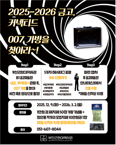 행사는 부산근현대〈007가방 찾기〉 역사관과 한국은행 부산본부 연계 문화사업으로, 사회관계망서비스(SNS)에 전시 참여를 인증하면 된다.
